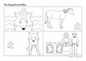 A selection of colouring pages linked to the story of The Gingerbread Man.
