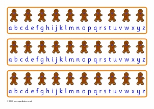 A PDF document with printable gingerbread men-themed desktop alphabet lines.