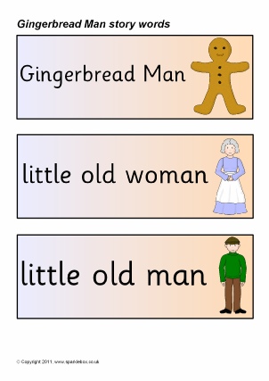 A set of printable word and picture cards linked to the story of The Gingerbread Man.