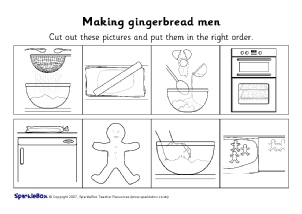 A simple cut-and-stick activity where children order the pictures showing how to make gingerbread men.