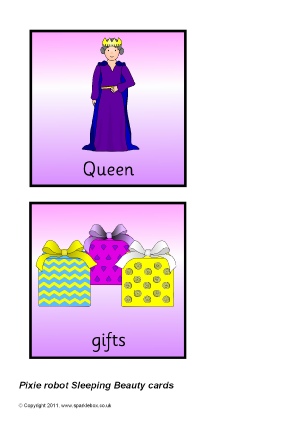 Printable cards linked to the traditional story of Sleeping Beauty. Each card is 15cm x 15cm and can be printed and laminated for all sorts of card-based activities.