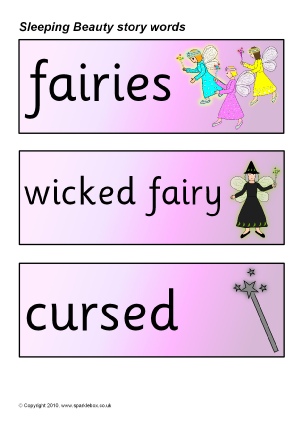 A set of printable word and picture cards linked to the story of Sleeping Beauty.