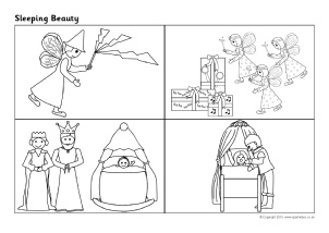 A selection of colouring pages linked to the story of Sleeping Beauty.