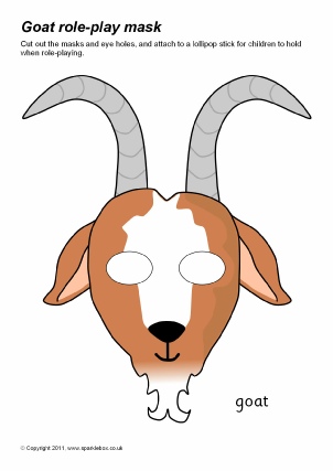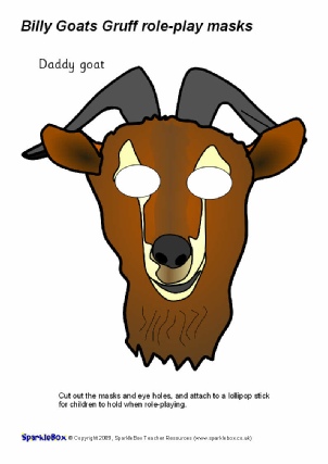 A set of printable cut-out masks for role-playing the traditional story of The Three Billy Goats Gruff. Simply cut out the eye-holes, laminate and attach to a stick for children to role-play or retell the story.