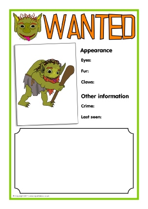 Troll Wanted Poster Writing Frames (SB3940)