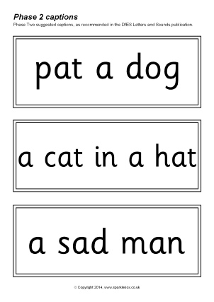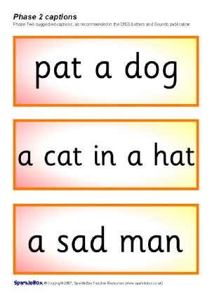 35 printable cards featuring suggested captions as outlined in Phase Two of the DfES Letters and Sounds publication.