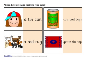 A set 36 loop cards featuring the pictures and sentences specified for Phase 2 of the DfES ‘Letters and Sounds’ publication.