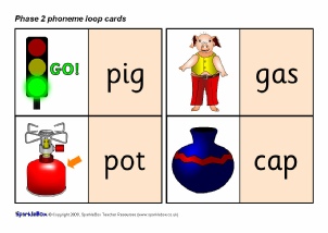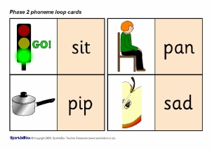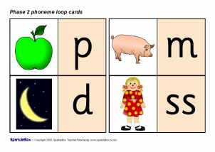 A set of printable loop cards featuring the Phase 2 phonemes (specified in the DfES ‘Letters and Sounds’ document) together with mnemonic pictures.