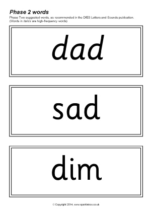 The suggested words for Phase Two as outlined in the DfES Letters and Sounds publication. Over 170 words included.