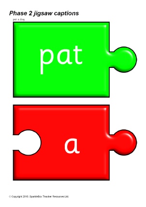 The Phase Two captions specified in the DfES Letters and Sounds publication presented on coloured jigsaw pieces for children to construct the captions themselves.