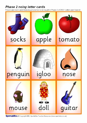 A set of printable cards with the Phase 2 phonemes (specified in the DfES ‘Letters and Sounds’ document) together with pictures for matching activities.