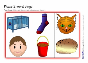 A bingo set where children match selected word cards (specified in the DfES ‘Letters and Sounds’ publication) to the pictures on their board.