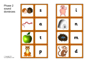 Printable word dominoes featuring Phase 2 phonemes and pictures. A great activity to practise recognition of the sounds.