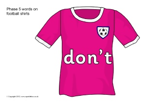 The Phase 5 high-frequency words presented on pink football shirts. Tricky words are in italics.