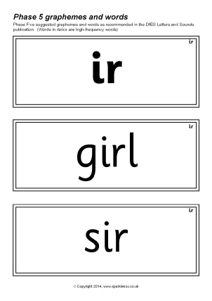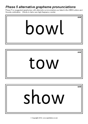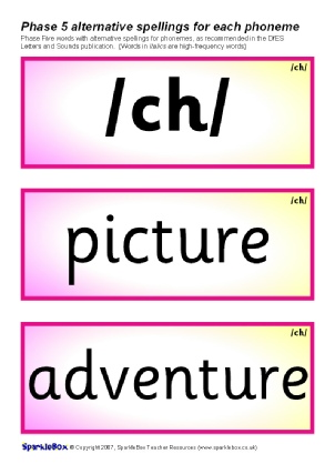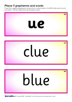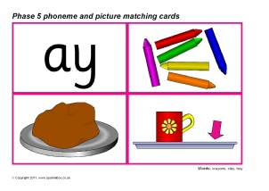 A set of printable cards with the 19 Phase 5 phonemes (specified in the DfES ‘Letters and Sounds’ document) together with pictures for matching activities.