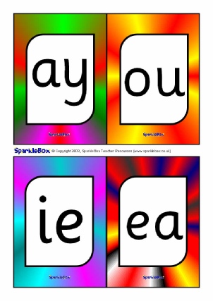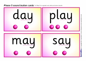 A useful set of brightly-coloured printable cards (4-to-a-page) with the additional Phase 5 phonemes specified in the DfES ‘Letters and Sounds’ publication.