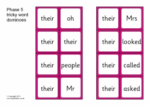 Printable word dominoes featuring Phase 5 phonemes and pictures. A great activity to practise recognition of the sounds.