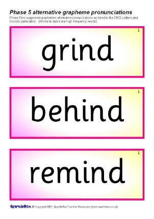 The suggested words for Phase Five graphemes with alternative pronunciations, as outlined in the DfES Letters and Sounds publication. Over 200 words included!