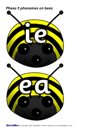 The Phase 5 phonemes specified in the DfES ‘Letters and Sounds’ publication presented on brightly-coloured bee characters. Ideal for classroom hanging alphabet lines.