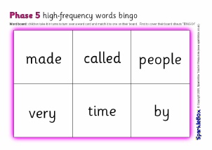 A simple bingo game featuring the Phase 5 high-frequency words, as specified in the DfES ‘Letters and Sounds’ publication.