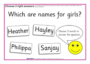 A set of 10 printable A4-sized mats to accompany the ‘Choosing three right answers’ activity outlined on page 143 of the DfES ‘Letters and Sounds’ publication. Includes the questions and possible answers, together with ‘yes’/’no’ cards for pupils.