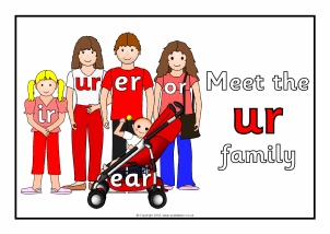 A set of A4 printable posters with ‘families’ showing various spelling patterns (graphemes) that make the same sound.