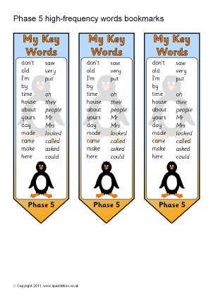 Phase 5 High-Frequency Words on Bookmarks (SB5922)