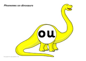 Phase 5 phonemes presented on colourful cartoon dinosaurs.