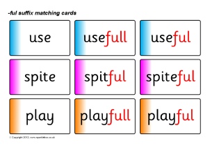 Phase 6 Word Cards for Adding Suffixes -ing, -ed, -ful,