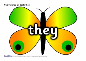 A colourful set of butterfly pictures featuring the tricky words as specified in the DfES ‘Letters and Sounds’ publication. The images are A4 size by default, but can be resized in Adobe Reader to print 2, 4 or 6 per sheet.