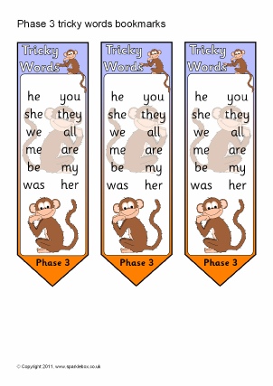 Phase 3 Tricky Words on Bookmarks (SB5808)