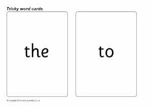 Large teacher-size basic tricky word flash cards to print out and use in all sorts of activities.