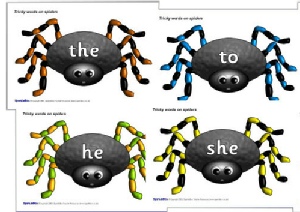 A colourful set of spider characters featuring the tricky words as specified in the DfES ‘Letters and Sounds’ publication.