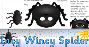 A set of simple A4-size visual aids for use when telling the popular nursery rhyme of Incy Wincy Spider.