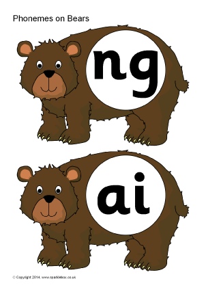 Phonemes for Phases 2 and 3 presented on brown bear characters.