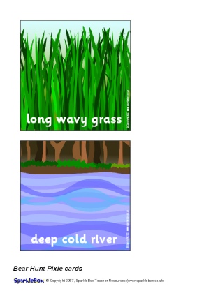 Multi-use printable cards with pictures and words linked to the popular story ‘We’re Going on a Bear Hunt’ by Michael Rosen and Helen Oxenbury. Each card is 15cm by 15cm and can be used for all sorts of card-based activities.