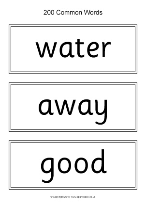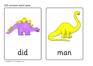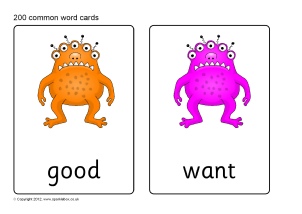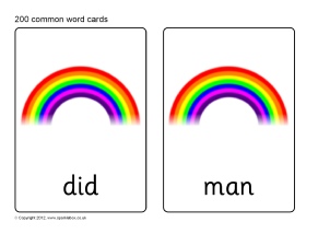 The next 200 common words as specified in the DfES ‘Letters and Sounds’ publication presented on simple flash cards.