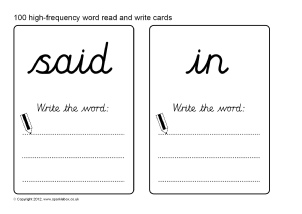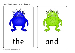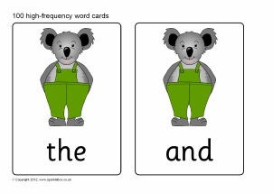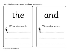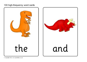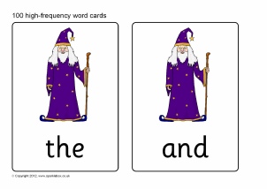 The 100 high-frequency words as specified in the DfES ‘Letters and Sounds’ publication presented on simple flash cards.