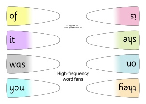 Printable word-fan segments that can be assembled on key rings for various word recognition activities.