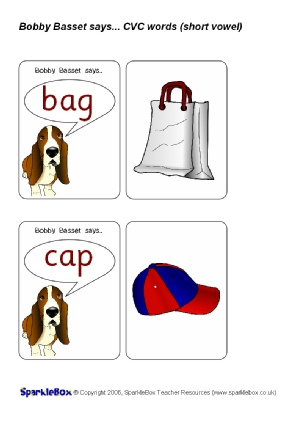 Another resource using the Bobby Basset character. Children can read the short-vowel CVC word that Bobby says and match it up with the relevant picture card. The set includes 44 different CVC words.