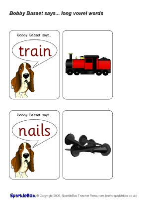 Another resource using the Bobby Basset character. Children can read the long-vowel CVC word that Bobby says and match it up with the relevant picture card. The set includes 30 different words with long-vowel sounds.