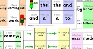 A set of printable loop cards featuring the first 25 high-frequency words as specified in the DfES ‘Letters and Sounds’ publication.