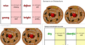 A large set of word cards featuring adjectives animated to represent their meanings.