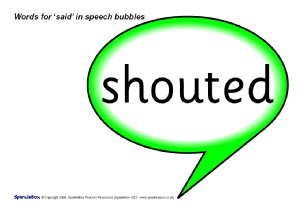 A set of coloured speech bubbles showing various alternative words for ‘said’. Great as visual prompts for children’s writing.