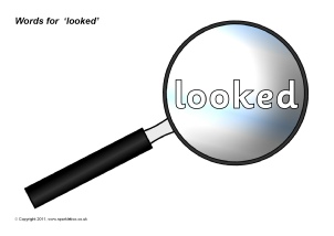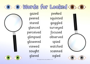 Alternative words for ‘looked’ presented on magnifying glasses.