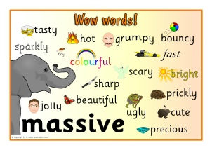 A printable word mat featuring lots of adjectives and accompanying pictures to help encourage children to use imaginative words when writing.