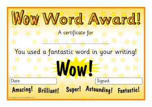 Printable certificates to present to your children when they use interesting and imaginative words in their writing.