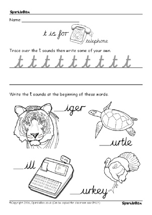 Very simple worksheets to help children practise the formation of alphabet sounds. This set includes sounds t-z.