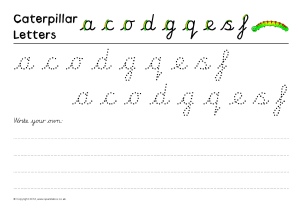 Very simple worksheets to help children practise the formation of alphabet sounds. This set includes worksheets for sounds a-j in cursive (joined) handwriting.