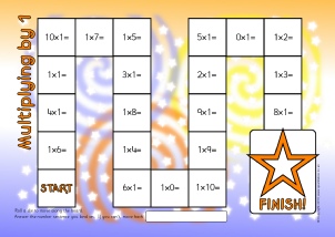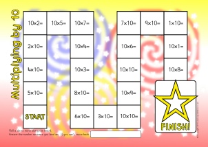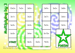 A basic board game where children move around the board and answer the multiplication number sentences.